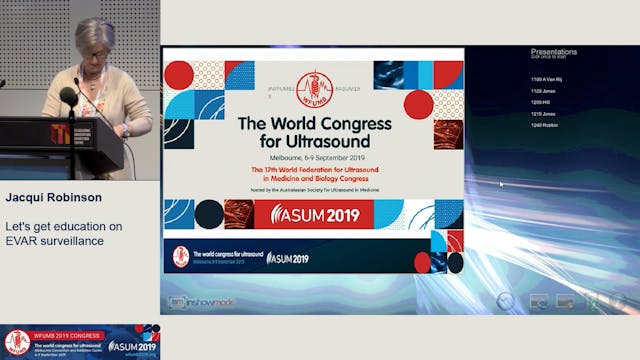 This presentation aims to provide an overview of abdominal aortic aneurysms, Endovascular Aortic Repair (EVAR) numbers and configurations, devices, endoleak and ultrasound assessment including cases.